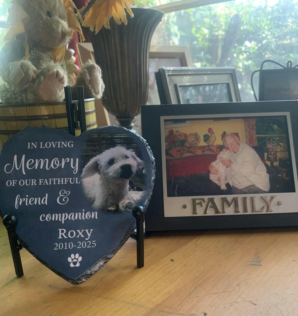 My beautiful memorial tribute of my precious Roxy arrived. It was more beautiful than I could ever imagine.. When I opened it my heart burst with love. I have closure now and I am grateful for that. I cannot thank you enough for this treasured gift